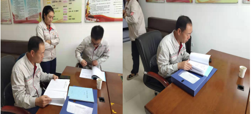首次会结束后,检查组根据议程安排分为党建、职场、 企业文化组、资产财务审计组、生产现场及安全环保组、采 购、仓储物流、营销组等四个小组,各组在陪同人员的带领 下,分别到公司各个区域开展认真细致的检查。