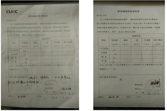 4、多渠道受理、高效率解决客户投诉。公司开通投诉专线、投诉联系单等方式受理客户投诉并24小时内响应,由专人负责处理,投诉处理率达100%。投诉处理后,定期跟进客户使用产品的情况,形成客户投诉闭环管理。