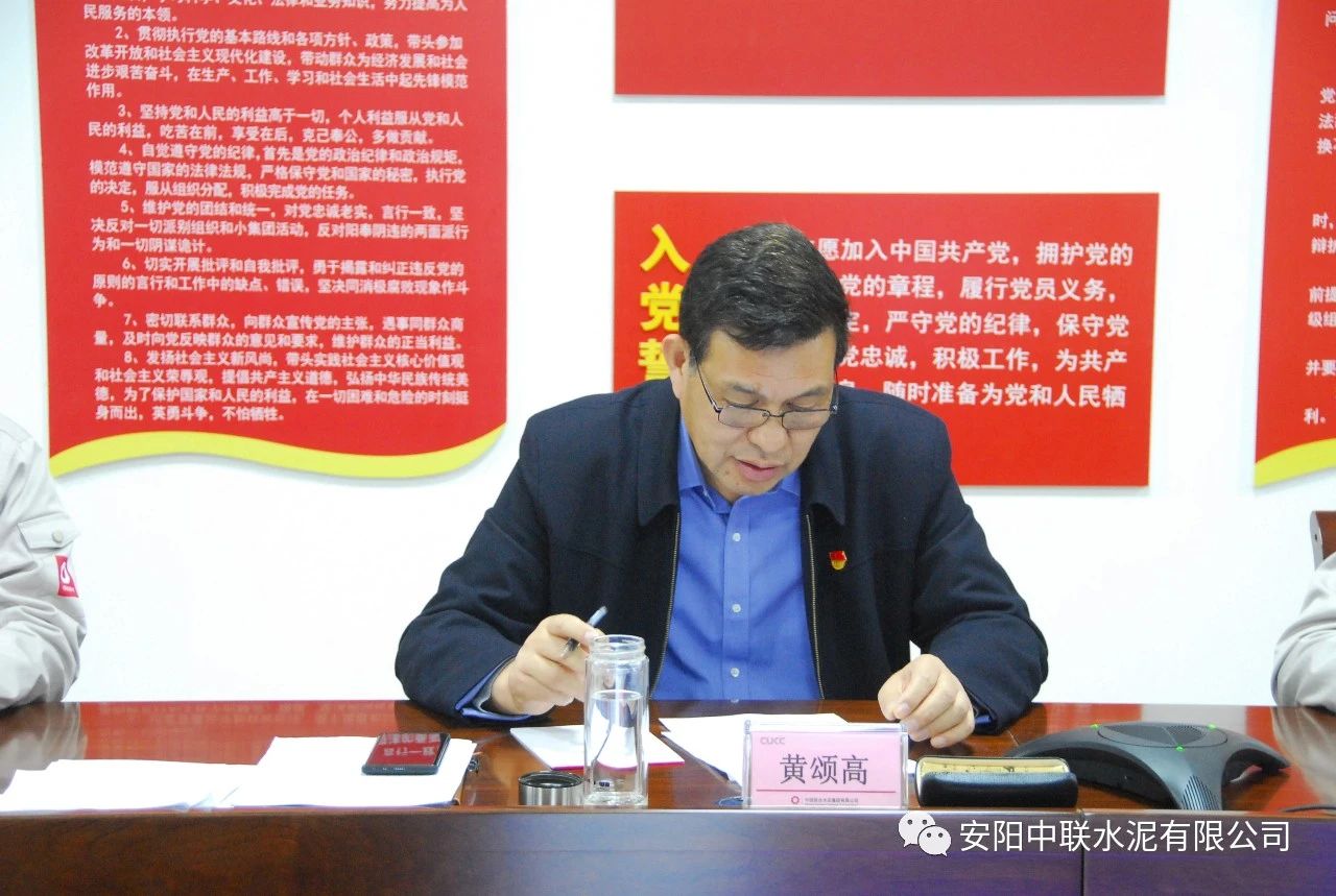 最后,黄颂高代表领导班子作表态发言。黄颂高表示,安阳太阳成集团tyc122cc入口将在中国联合水泥、河南运营管理区的正确领导下,以此次民主生活会为契机,紧紧围绕中国联合水泥下达的年度目标任务和政治巡视整改工作安排,着力谋划好公司党的建设和“水泥+”一体化经营发展大计,加强科学谋划,深化改革创新,抢抓机遇,坚定信心,迎难而上,确保全年各项目标任务如期完成,以优异的成绩迎接建党100周年。